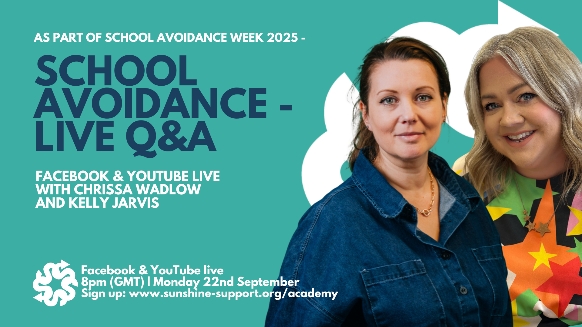 To kick off School Avoidance Awareness Week 2025, join Sunshine Support's Chrissa Wadlow and Kelly Jarvis for a live hour of chat streamed across our Facebook and YouTube channels.